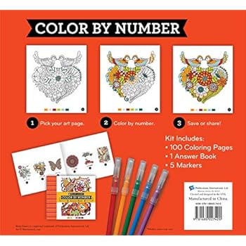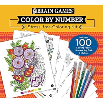 Color by Number Kit includes:100 coloring pages1 answer key book5 markers Coloring pages are from Brain Games - Color by Number: Stress-Free Coloring books